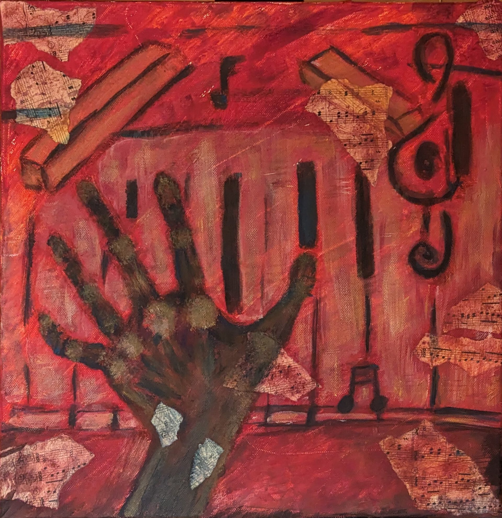 Inspired by the Cubist movement, this piece explores the tension between joy and displacement. It evokes the feeling of doing something you love, like playing the piano, while simultaneously carrying the quiet ache of not belonging as well as, in spite of all efforts, not being „good enough“.