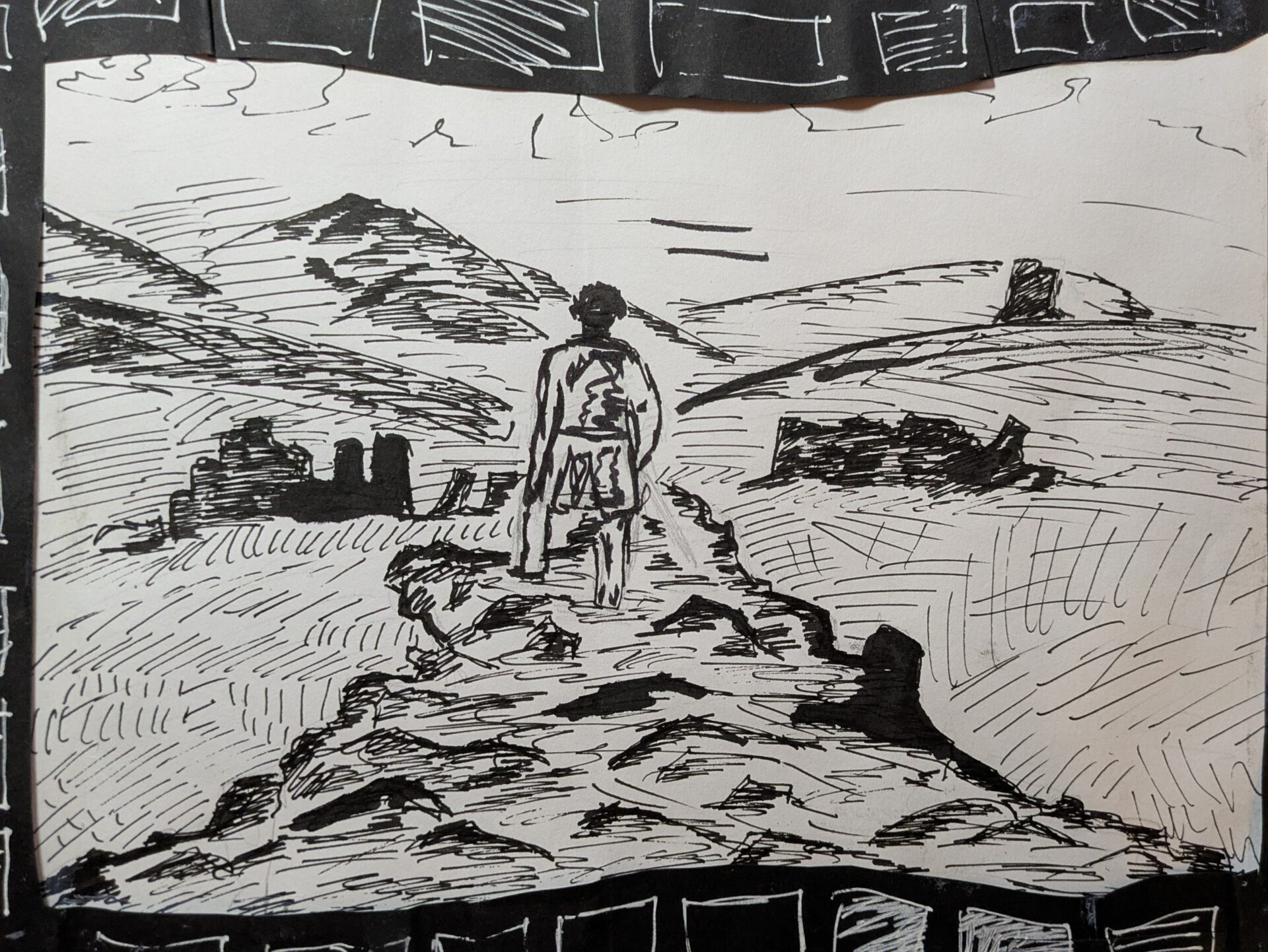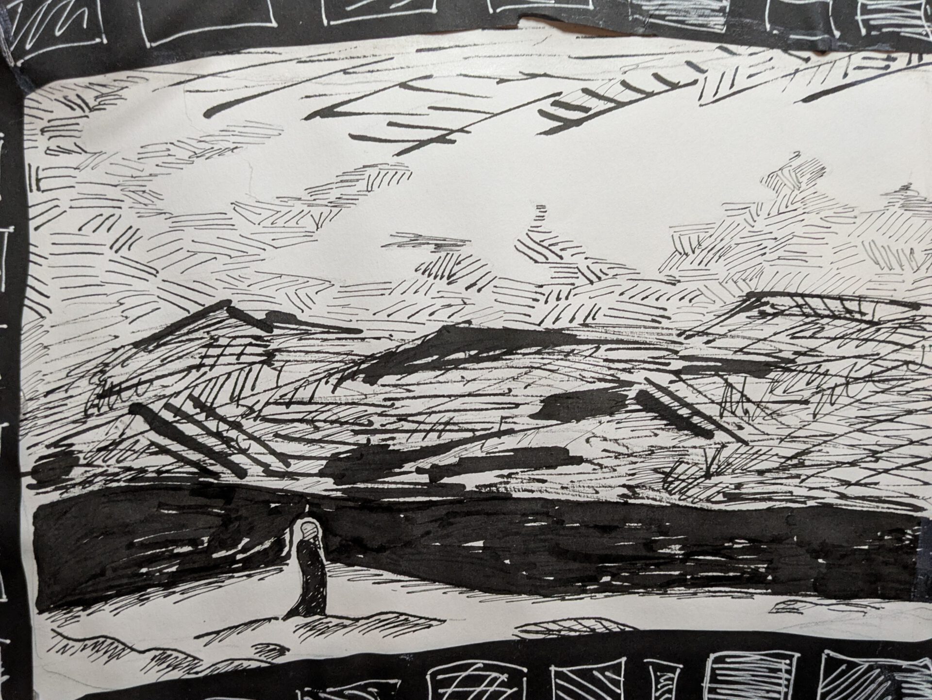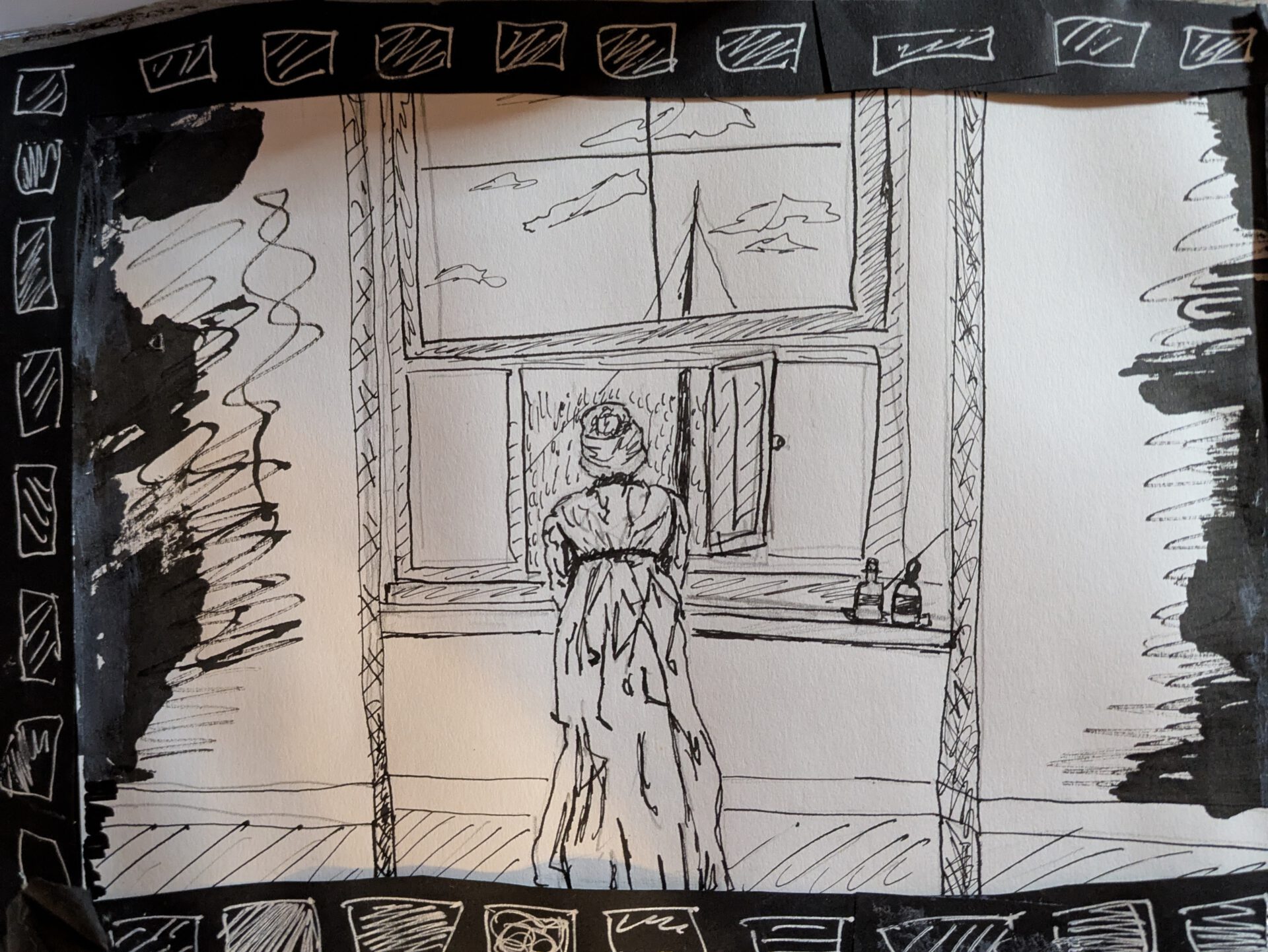 This artwork was part of an exhibition (05.01.2024 – 02.08.2024, Kunstausstellung “Romantisch 2024”, Pommernhus) centred on the theme of Romanticism, with a particular focus on Caspar David Friedrich. The piece presents several of Friedrich’s iconic works arranged sequentially, echoing the visual rhythm of a film strip.