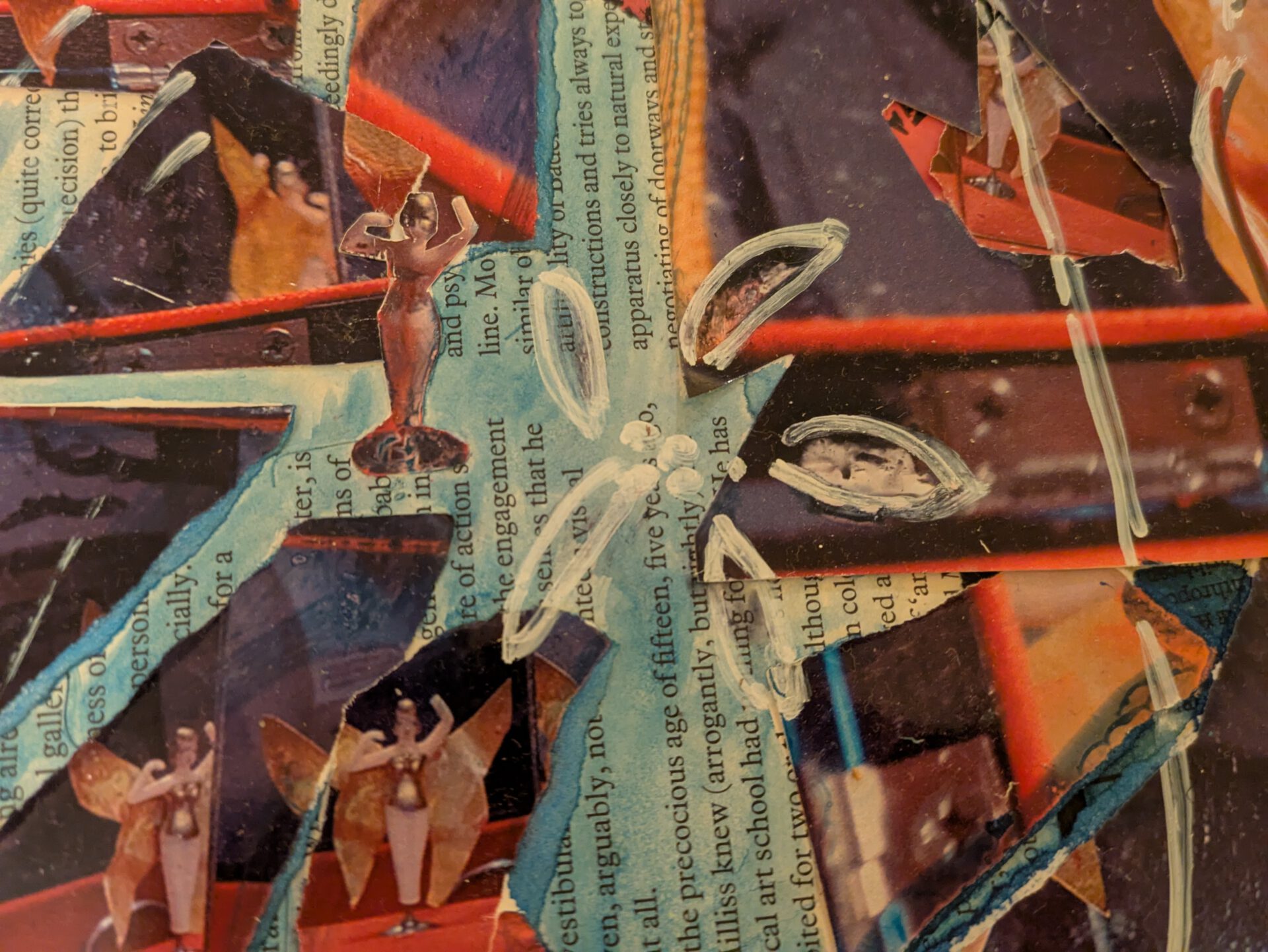 Using the motif of the fairy, the work dives deeper into the experience of an identity crisis. The cut out photography symbolises shattered glass, while the fairy tries to dance for the world yet cannot seem to see herself clearly in any reflection.