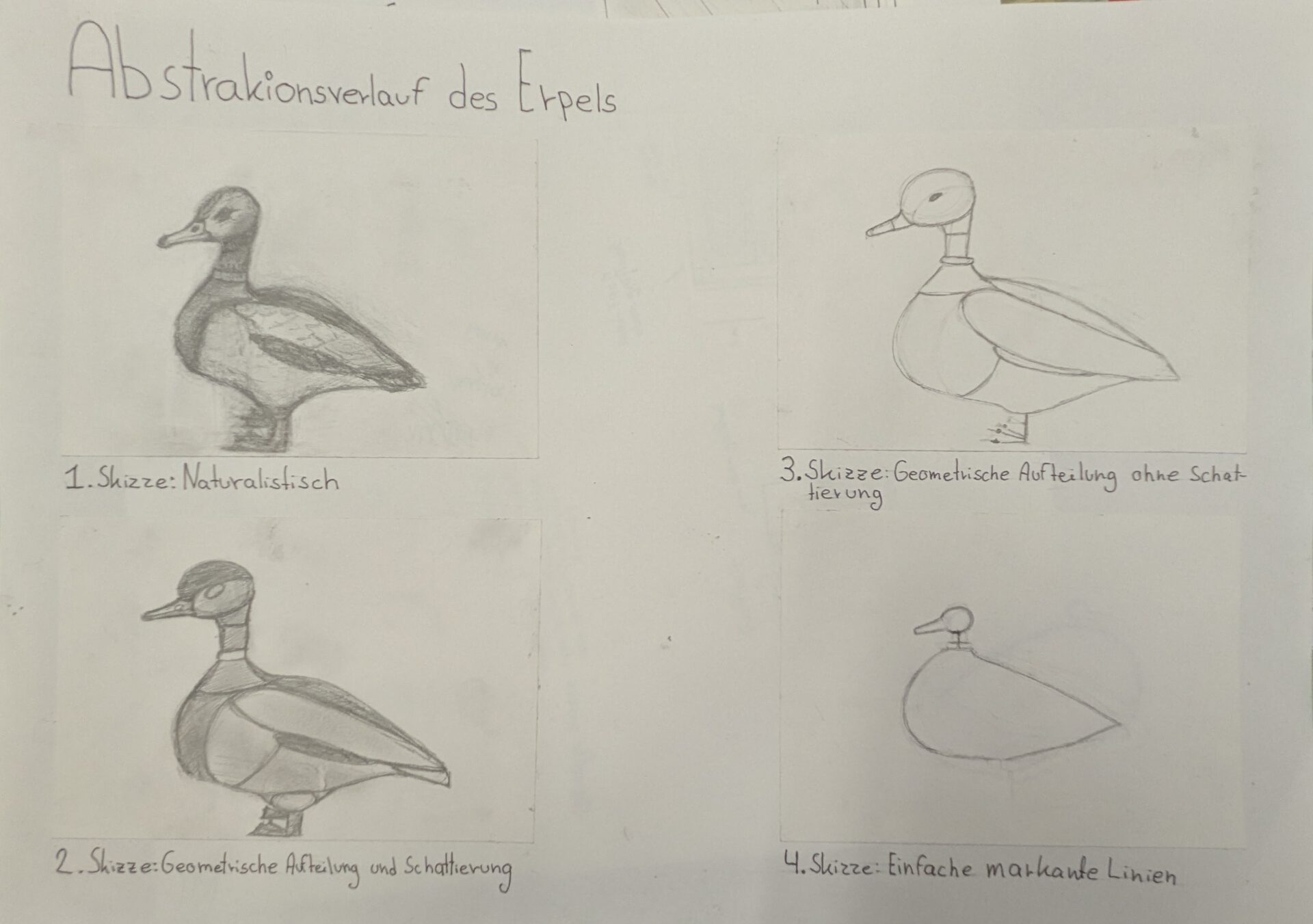 Part of a school assignment in which we had to choose an animal and create a four‑step abstraction based on Pablo Picasso’s method from “The Bull – A Lesson in Abstraction.”