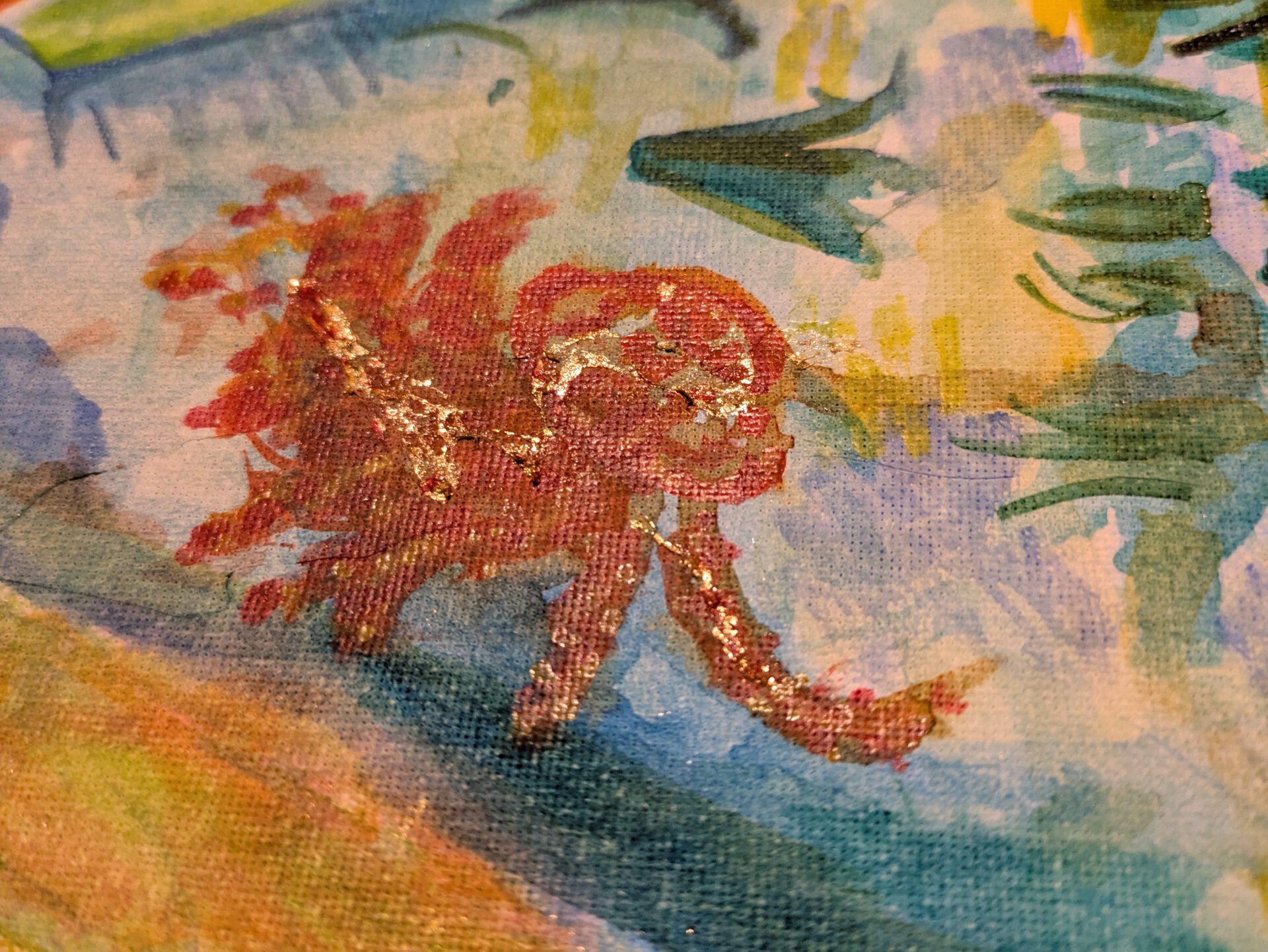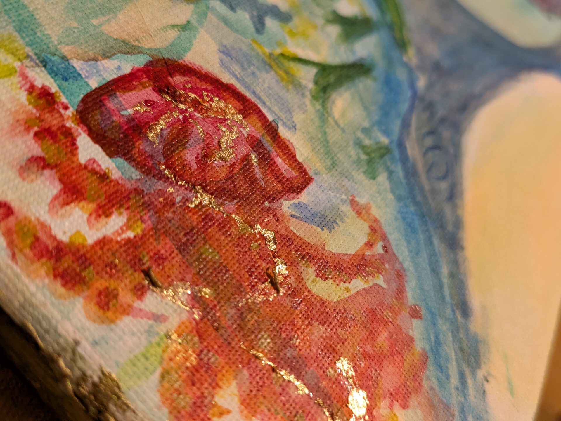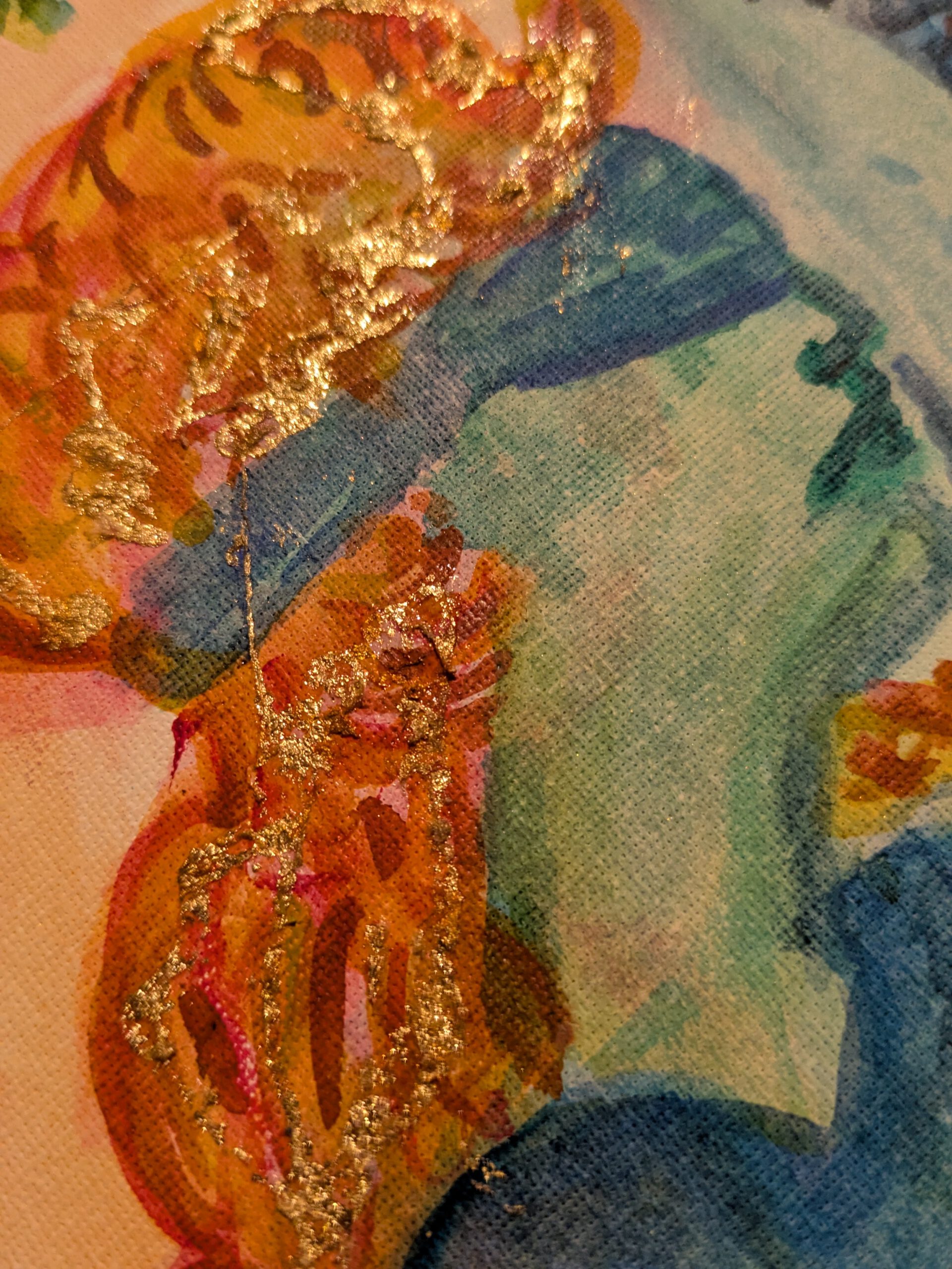 Watercolour with gold aluminium on canvas.
