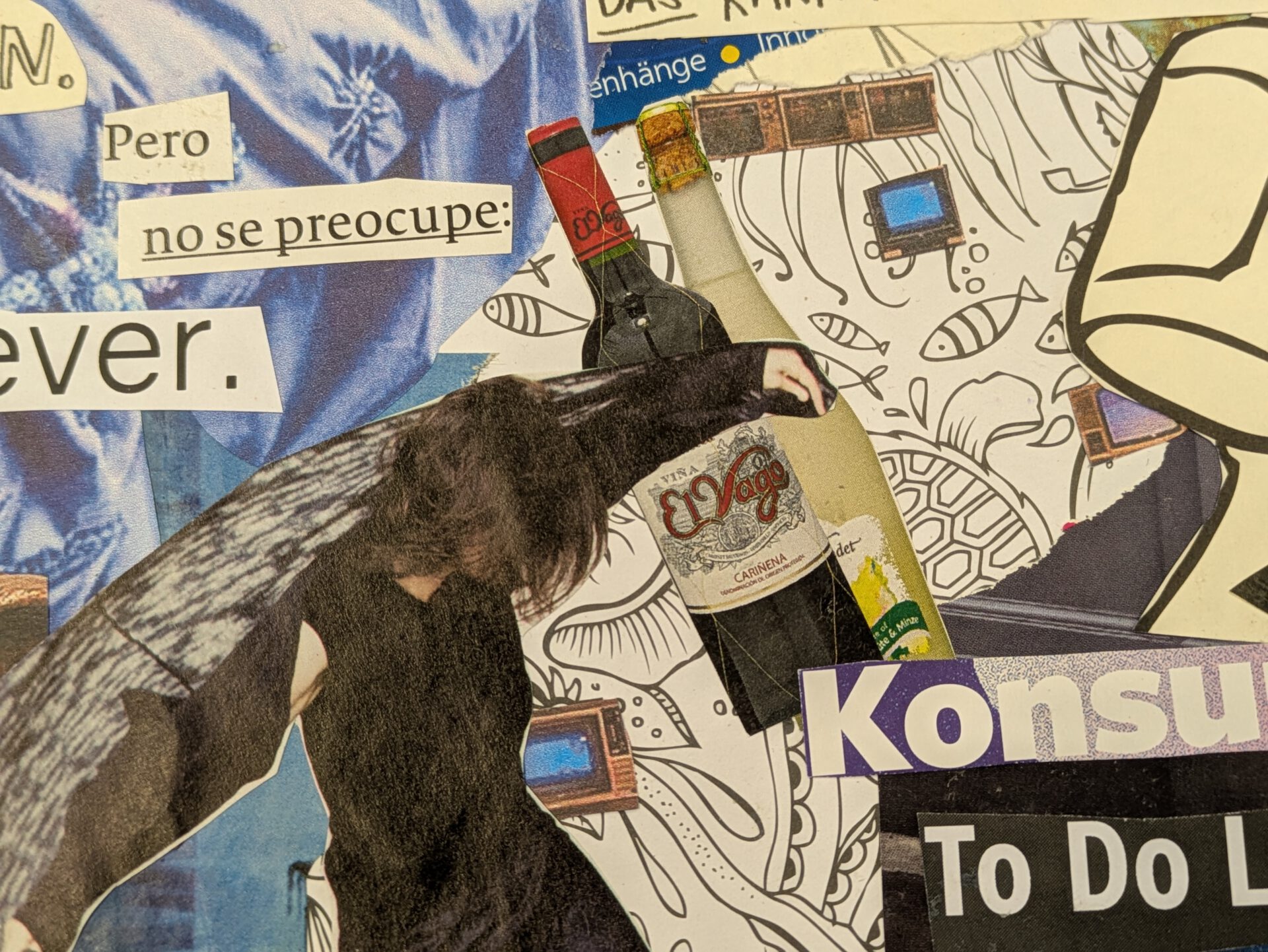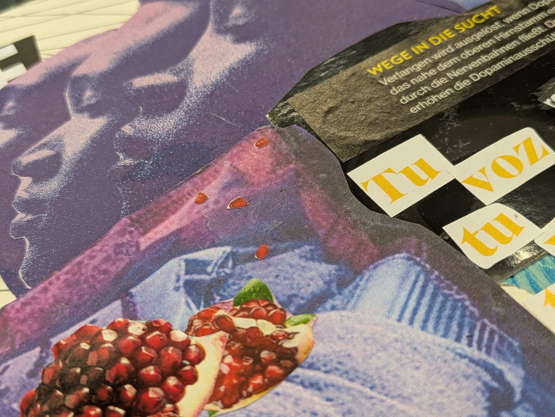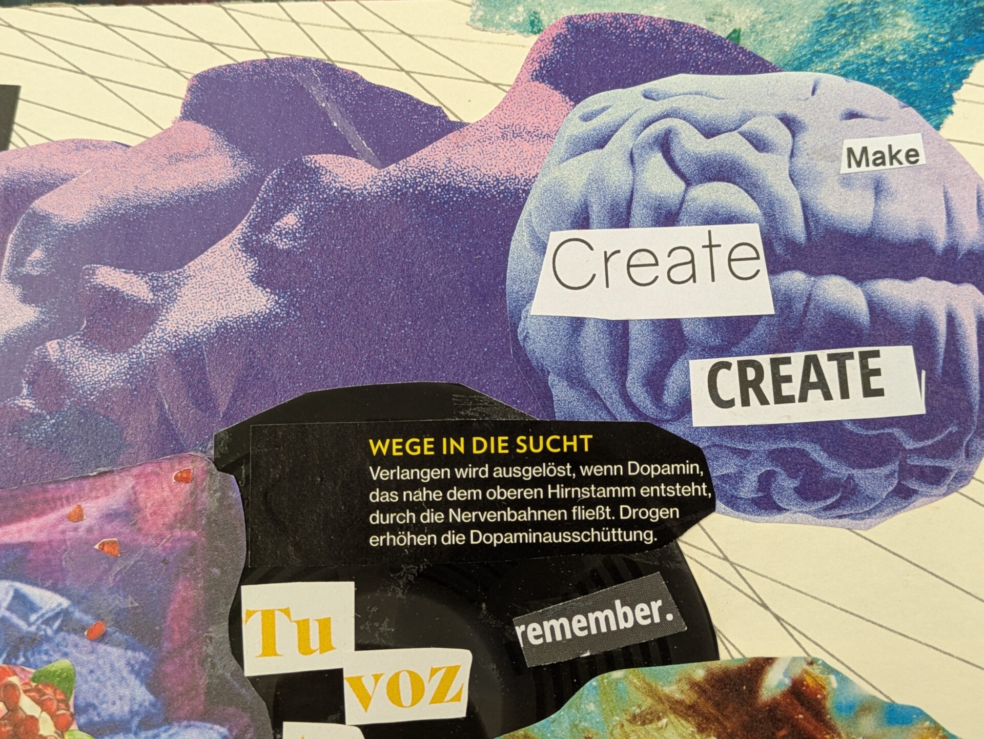 Made for a school project in the style of Dada, mixed with modern themes. It tackles the theme of how our modern-day influences our mental health.